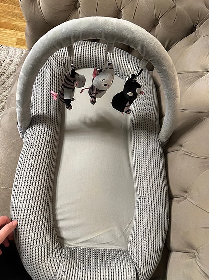 Babynest med avtagbar lekbåge grå