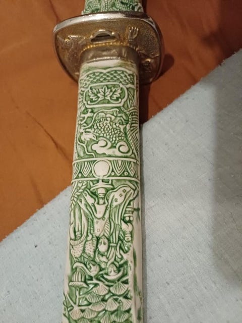 Vackert snidad samuraj svärd