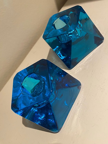 Blå glasljusstakar retro, Nybro glasbruk