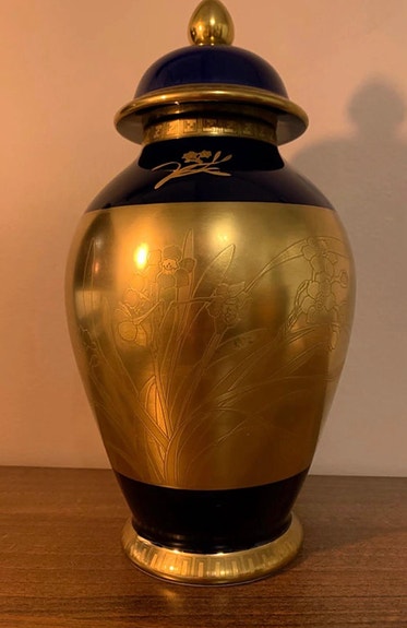 Urna "Gold Narcissus" i koboltglaserat porslin