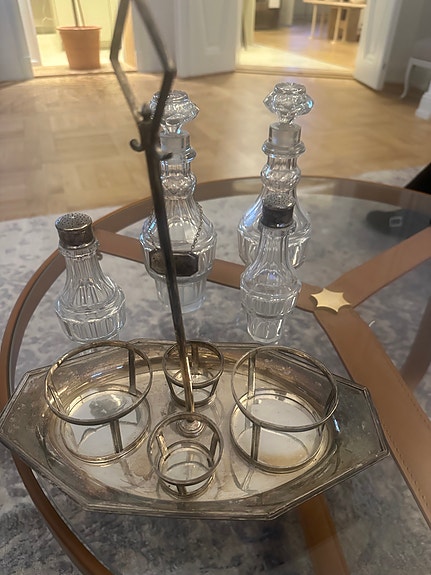 Okänt märke karaffställ med glasflaskor metall glas