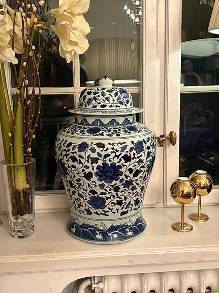 Blåvit porslinsurna med lock