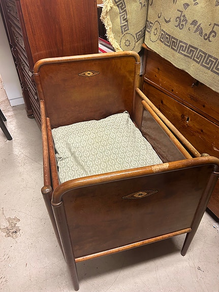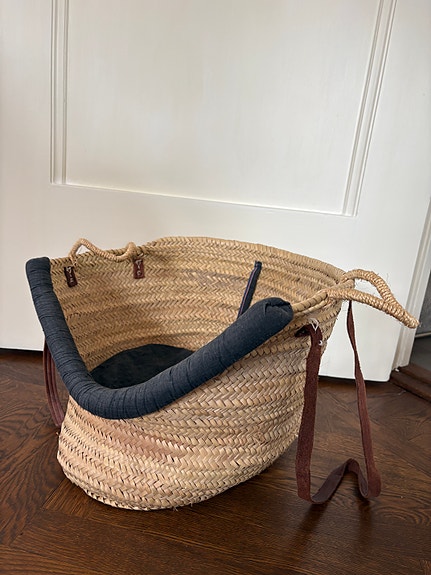 Hundkorg/väska flätad med axelremmar och innerdyna naturfärgad