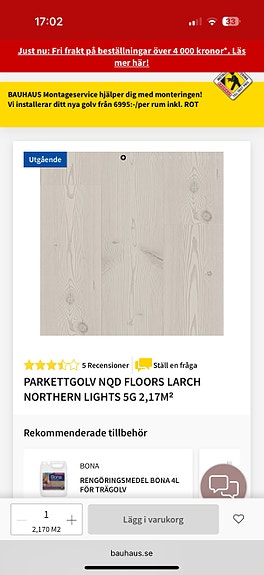 1 000 krNod Floors Larch Parkettgolv Northern Lights 5G 2,17 m²Älta1 marLägg till i favoriter.Öppna annons