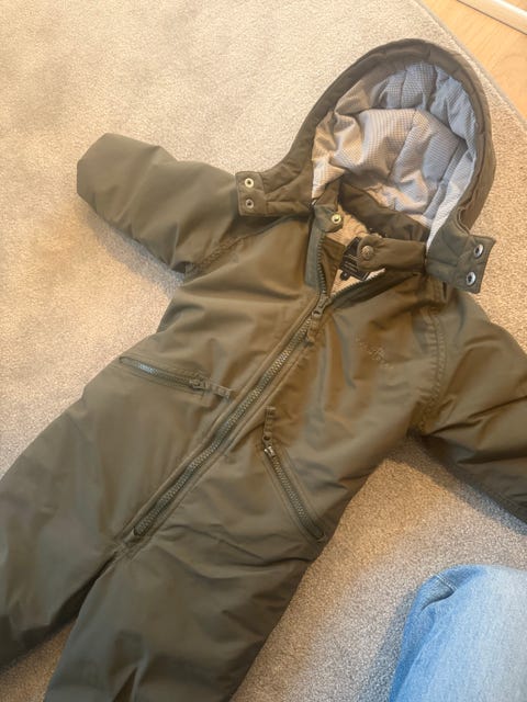 Under vintern är det viktigt att hålla de små varma med rätt kläder: ulliga heldräkter, sockor, vantar, mössor och ytterkläder. En overall är ofta snabbare att ta på än separata jackor och byxor, och snön har svårare att tränga in. I annonserna bör du kolla skicket på ytterkläderna, till exempel hur bra muddar och ben kan justeras, om det finns många reflexer och om kläderna är vattentäta.