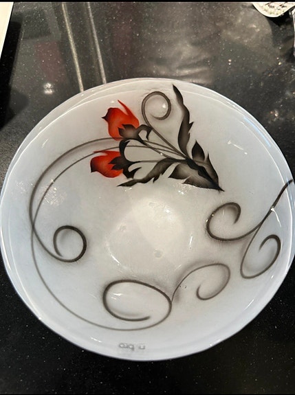 Dekorativ handmålad skål – retro – 1960/80-tal