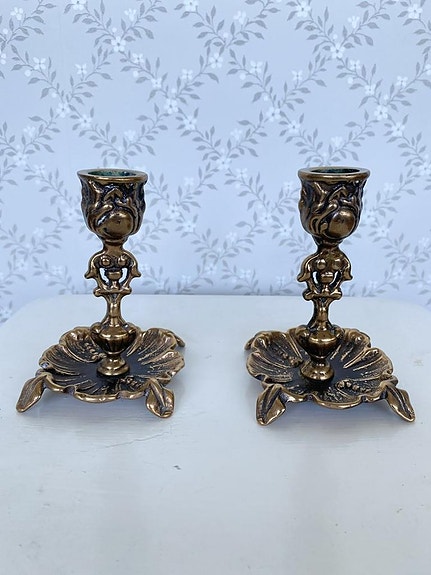 Köp flera mässingsljusstakar i samma stil och skapa ett stilleben för festbordet