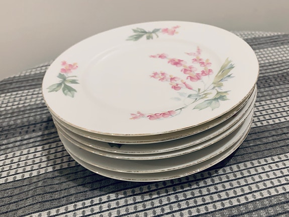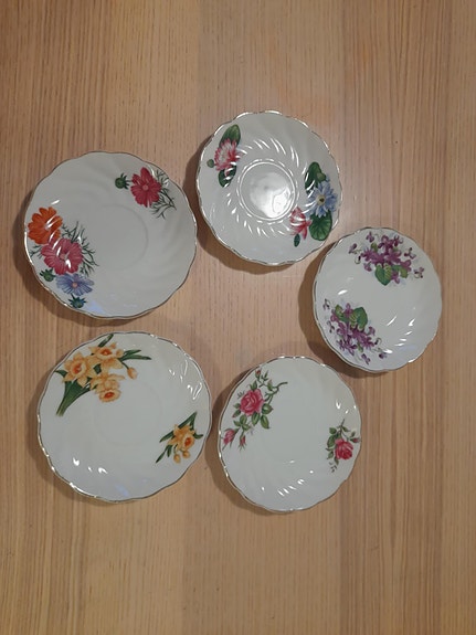 Vintage tefat med blommor – 5 st, porslin, 12 cm