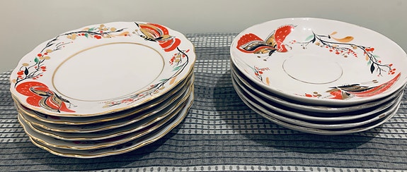 Vintage! Lomonosov "Red Butterfly" – 6 st assietter & 5 st kaffefat