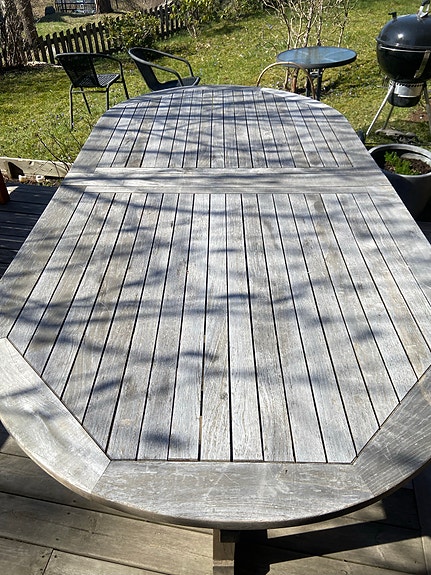 Trä bord utomhus ovalt.