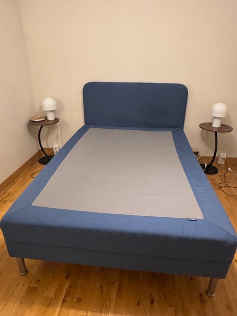 1 000 krIKEA säng med resårbotten och blå klädsel IKEAHuddinge1 timLägg till i favoriter.Öppna annons