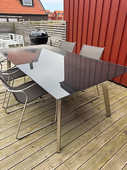 700 krTrädgårdsgrupp glasbord och 4 positionsstolarHovmantorp15 aprLägg till i favoriter.Öppna annons