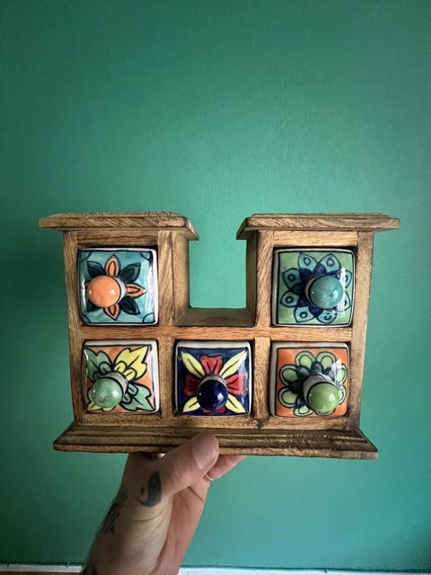 Keramiklådor i träställ