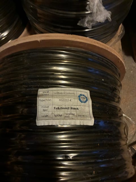 svartkabel 6mm2 500m per rulle