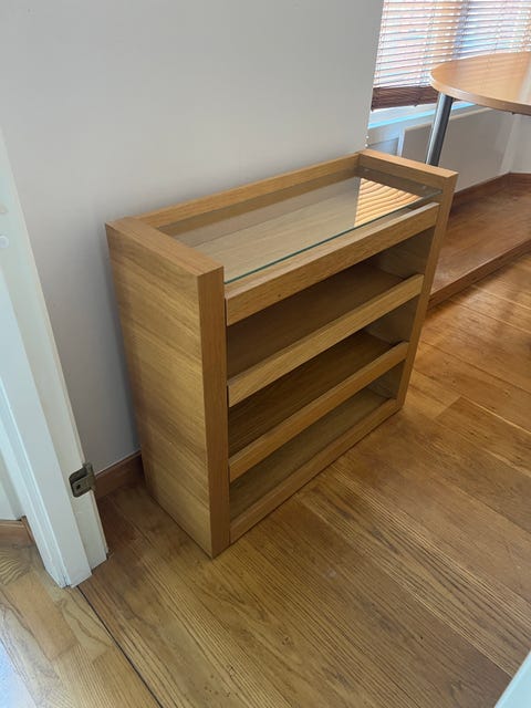 vackert vitrinskåp/bokhylla i massiv ek