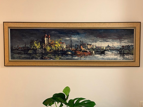 Stor Panoramatavla 133cm – Signerad Oljemålning (1966) Modernistisk