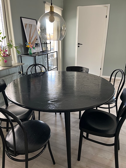 Matbord runt svart trä