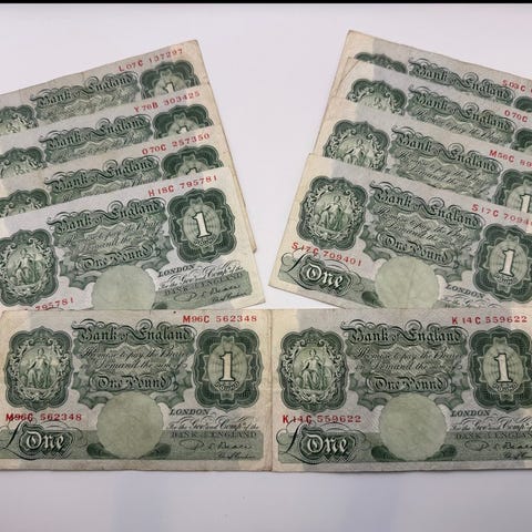 1 200 krParti på 10 vintage 1950-tals Bank of England £1-sedlar – Blandade serienummerVästerlanda12 febLägg till i favoriter.