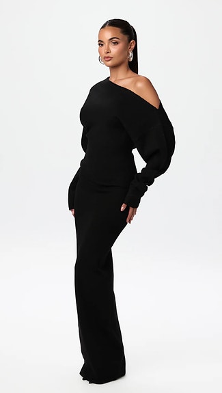 KNIT OFF-SHOULDER SWEATER MAXI DRESS