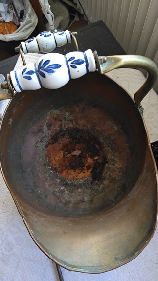 Gammal kol gryta i koppar.