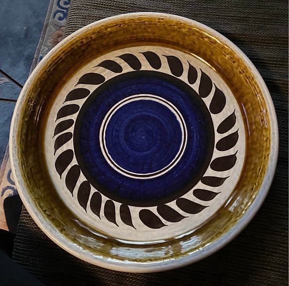 Tungt fat i stengods by Olle Alberius Rörstrand. H. 6cm och D. 35cm. Fint skick!