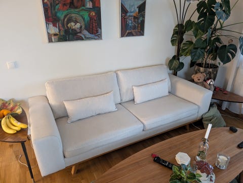 Om du funderar på att köpa begagnade möbler är det bra att ta exakta mått på den plats du har tillgänglig i ditt hem. Jämför sedan med måtten i annonserna. Kolla också om soffan har avtagbart och tvättbart överdrag eller andra skötselråd. Genom att köpa begagnat ger du möbler nytt liv och sparar samtidigt pengar.