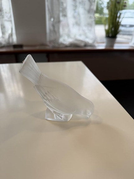 LALIQUE Paris frosted Crystal Bird Sparrow, Head down Signed