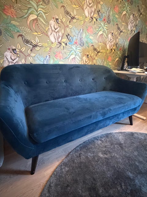 Blå sammetsoffa