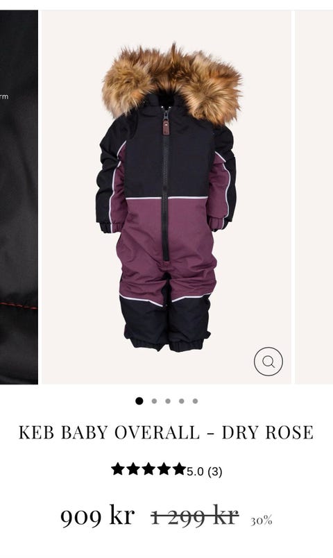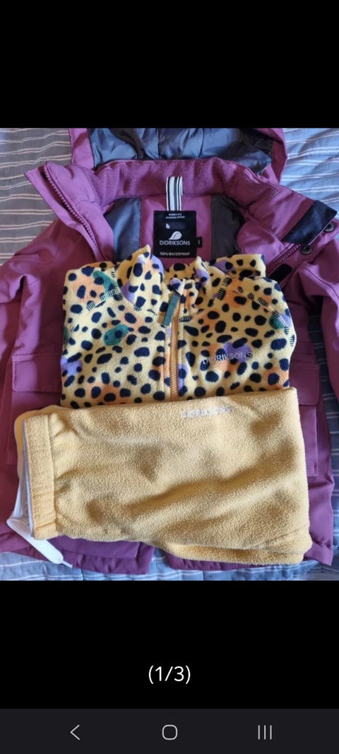 Under vintern är det viktigt att hålla de små varma med rätt kläder: ulliga heldräkter, sockor, vantar, mössor och ytterkläder. En overall är ofta snabbare att ta på än separata jackor och byxor, och snön har svårare att tränga in. I annonserna bör du kolla skicket på ytterkläderna, till exempel hur bra muddar och ben kan justeras, om det finns många reflexer och om kläderna är vattentäta.