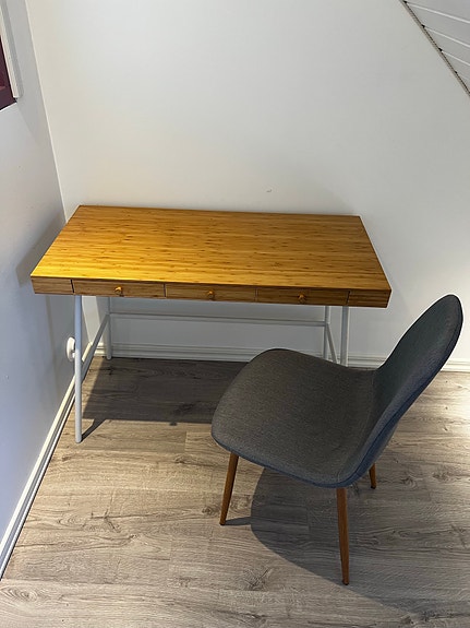 Ett skrivbord som inte längre behövs av någon annan kan vara precis vad du letar efter. Särskilt skrivbord i massivt trä eller elektriska skrivbord kan vara kostsamma, men du kan hitta ett passande alternativ betydligt billigare begagnat. Ett bra skrivbord har en höjd som passar användaren eller kan justeras efter behov. När du bläddrar bland annonserna - se till att kolla bordets mått och jämför dem med den bästa arbetshöjden för dig.