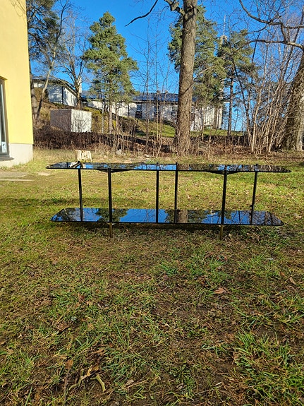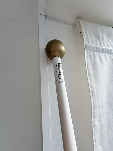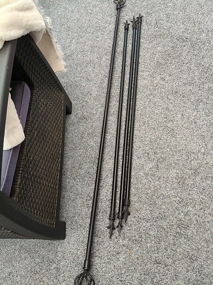 Svarta gardinstänger.