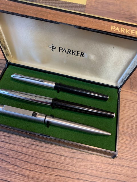 500 krParker set reservoarpenna kulspetspenna mekanisk blyertspenna metall svartSpånga10 febLägg till i favoriter.