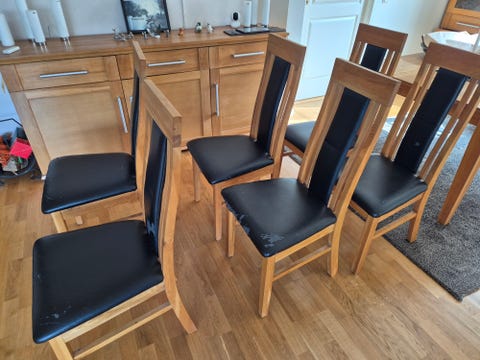 Matbord i ek med 6 st stolar