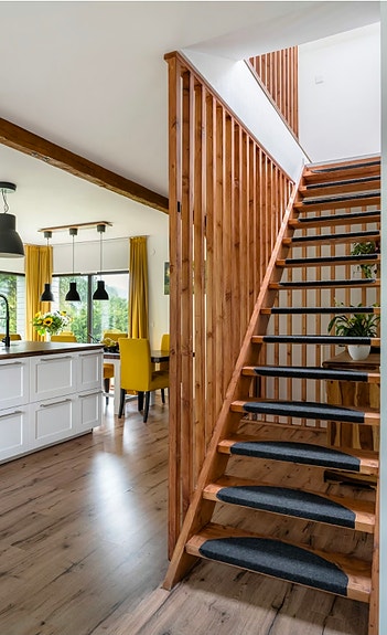 Trätrappa inomhus med räcke brun