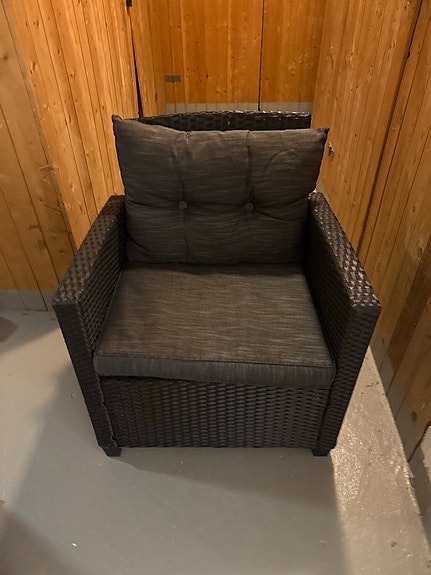 1 200 krLoungegrupp fåtölj och soffbord konstrotting svart med glasbordsskivaStockholm17 marLägg till i favoriter.Öppna annons
