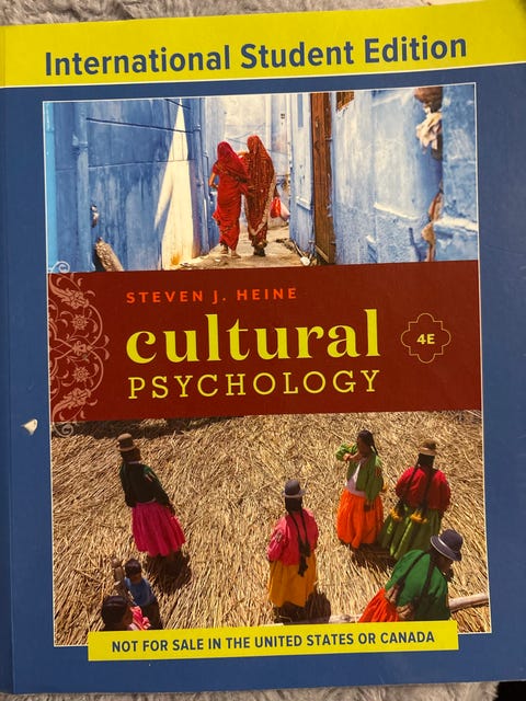400 krCultural Psychology- Steven J. Heine 4th editionSpånga7 dagarKöp nuLastbil i rörelseKan skickasLägg till i favoriter.
