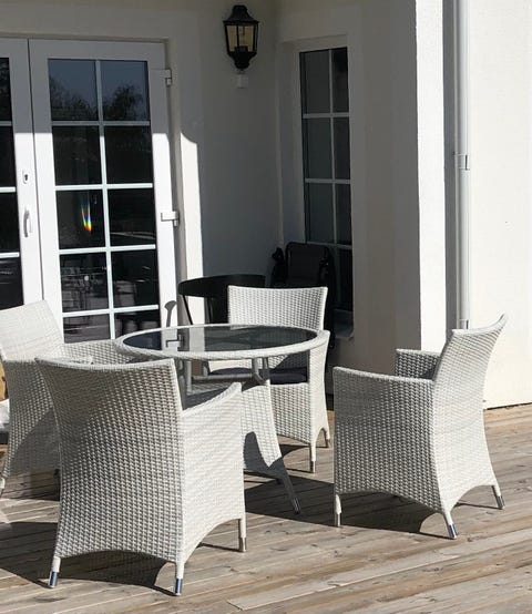 1 500 krMatgrupp utomhus bord med glas-skiva och 4 stolar konstrotting svartRosersberg2 dagarLägg till i favoriter.