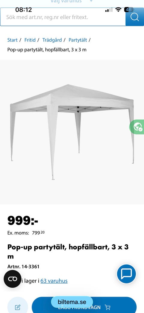 Hitta ett begagnat partytält eller en paviljong! På Blocket finns det 210 annonser där tält och paviljonger köps och säljs.