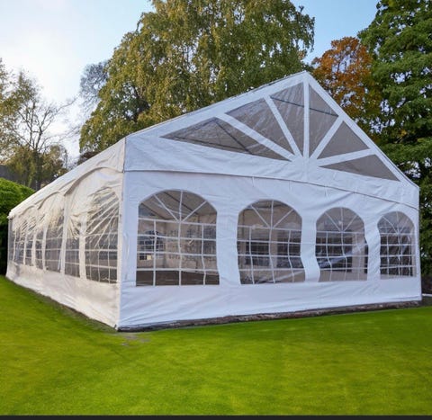 Partytält - 8x4m - vitt med fönster och flexibla ingång