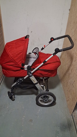 barnvagn röd, med en 2 delar 1 ligg och en sit del