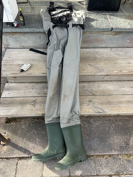 Vadare och annan fiskeklädsel kan hittas begagnade