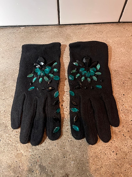 H&M handskar med gröna stenar