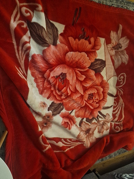 Röd filt med stora blommor 85 x 93