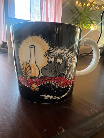 Arabia muminmugg SNIFF blå oanvänd med etikett.