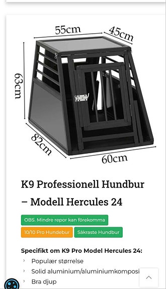2 500 krK9 Hercules 24 professionell hundbur 63x82x60 cm svartHammarstrand1 minKöp nuLastbil i rörelseKan skickasLägg till i favoriter.Öppna annons