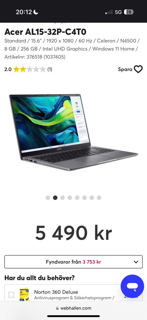 4 000 krAcer Chromebook Laptop AcerLinköping31.12.25Gratis frakt•Köp nuLastbil i rörelseKan skickasLägg till i favoriter.