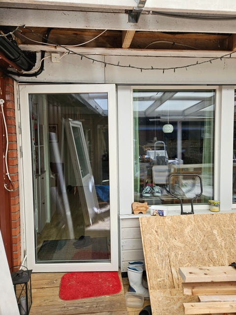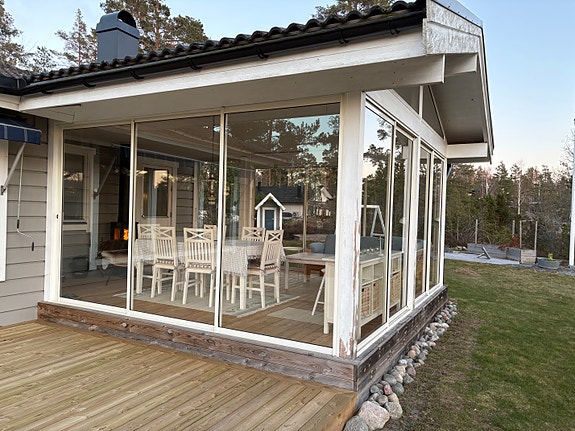 Inglasat uterum med skjutdörrar glas