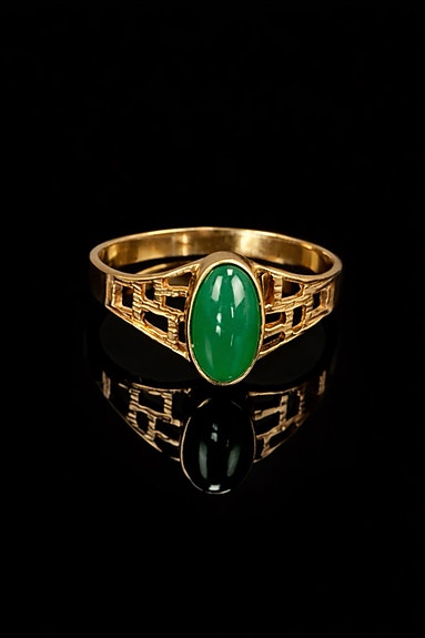 Handgjort van cleef set i 18K guld (Halsband & Ring) med Malakit – 12.5g