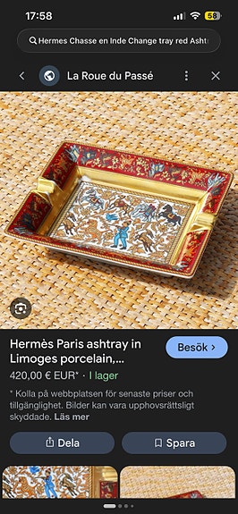 3 500 krHermès Paris askfat porslin Limoges röd/guldStockholm1 dagGratis frakt•Köp nuLastbil i rörelseKan skickasLägg till i favoriter.Öppna annons