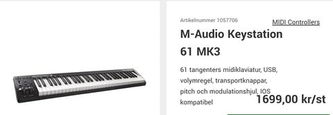 1 000 krM-Audio Keystation 61 MK3 MIDI-keyboard 61 tangenterStockholm30 janKöp nuLastbil i rörelseKan skickasLägg till i favoriter.